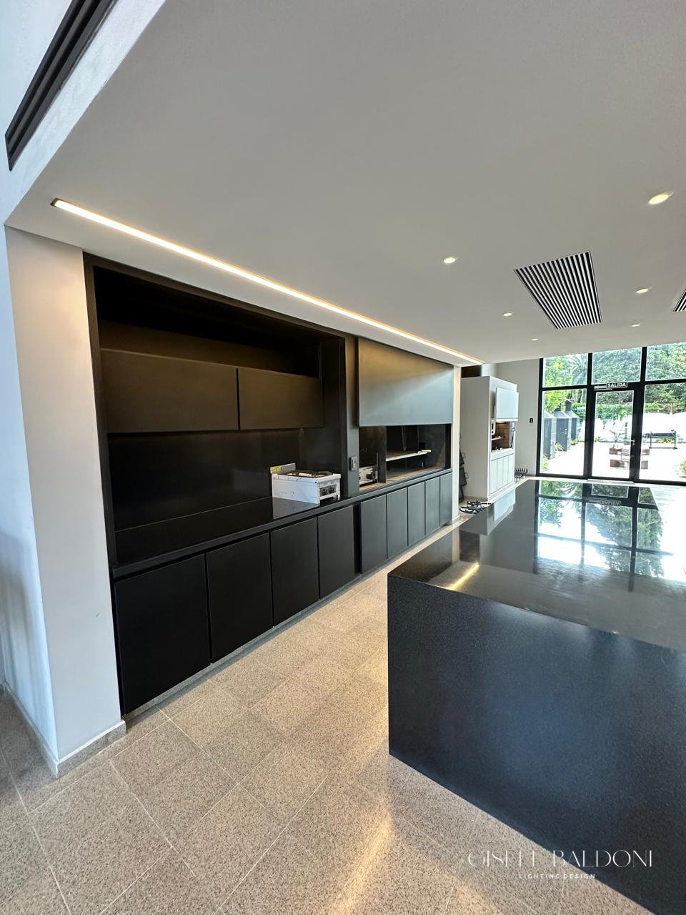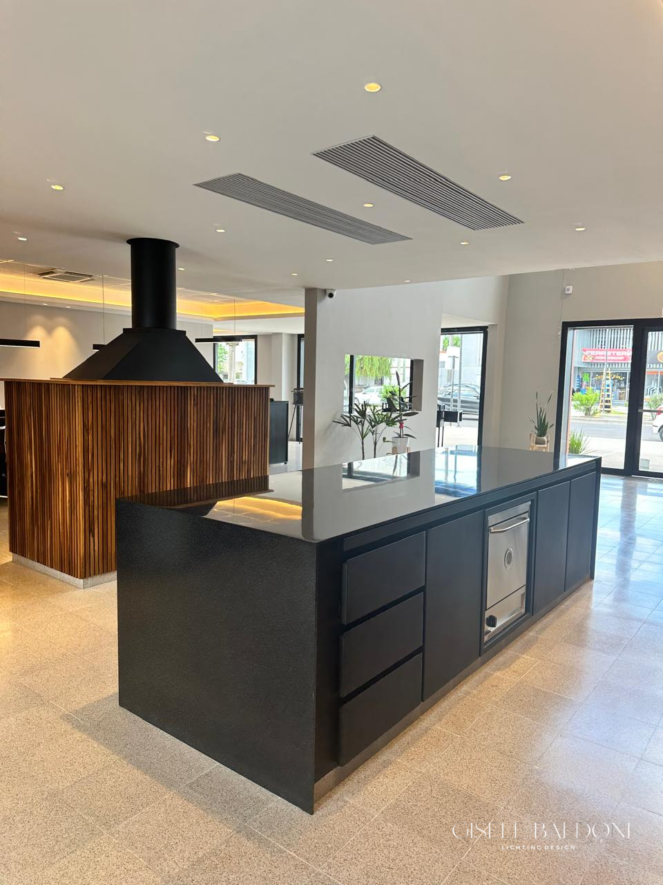 Este proyecto fue pensado con tecnología de led de alta presentación, para poder lograr un iluminación de impacto sobre los productos expuestos y a su vez, generando en los planos de trabajo, una iluminación apta para poder trabajar sin encandilar.